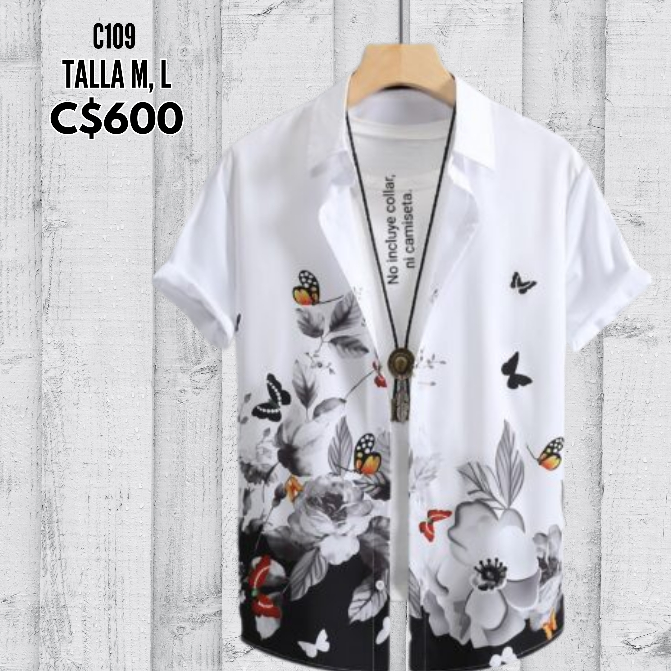 Camisa de vestir color blanca con estampado de mariposas