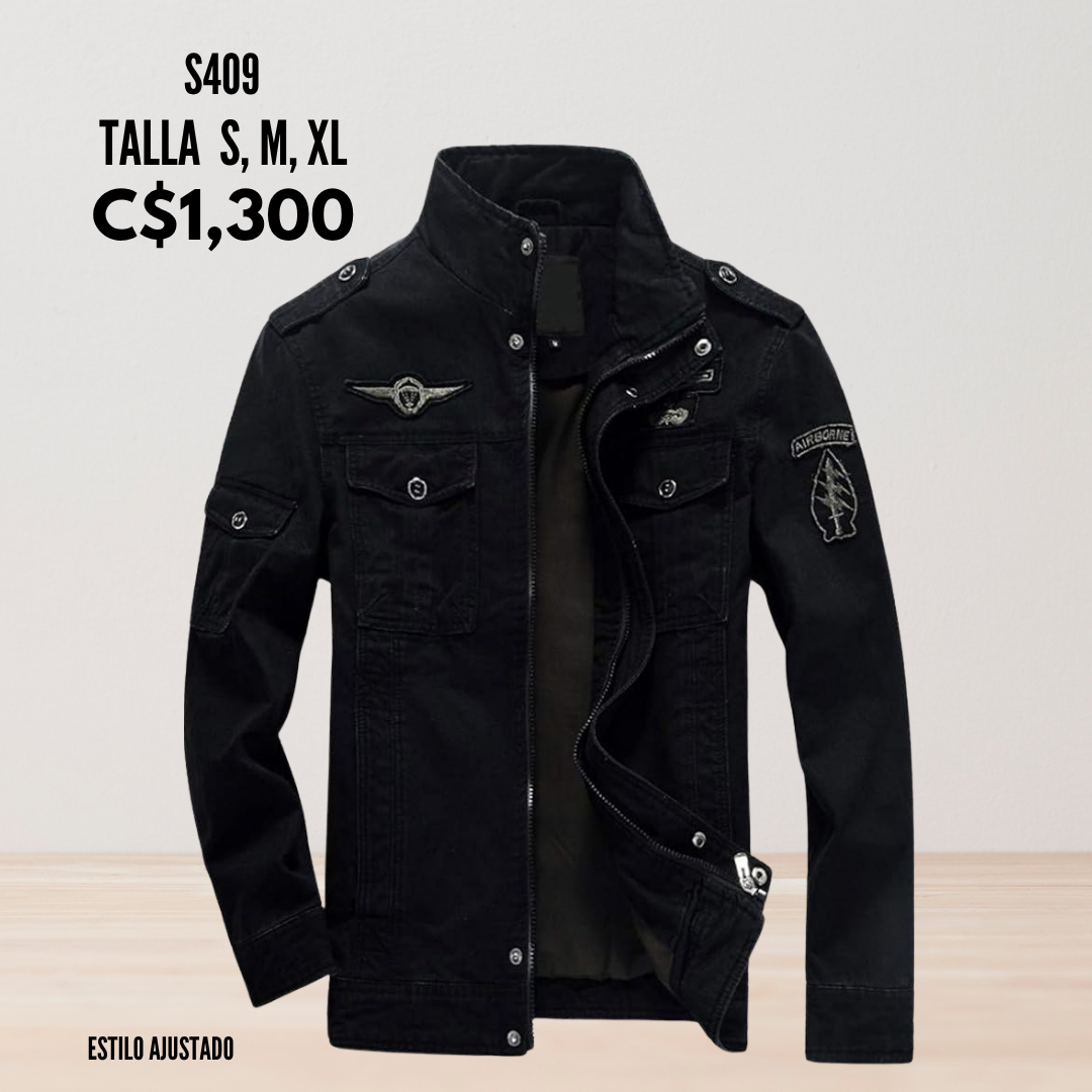 Chaqueta negra de mezclilla estilo aviador – S409