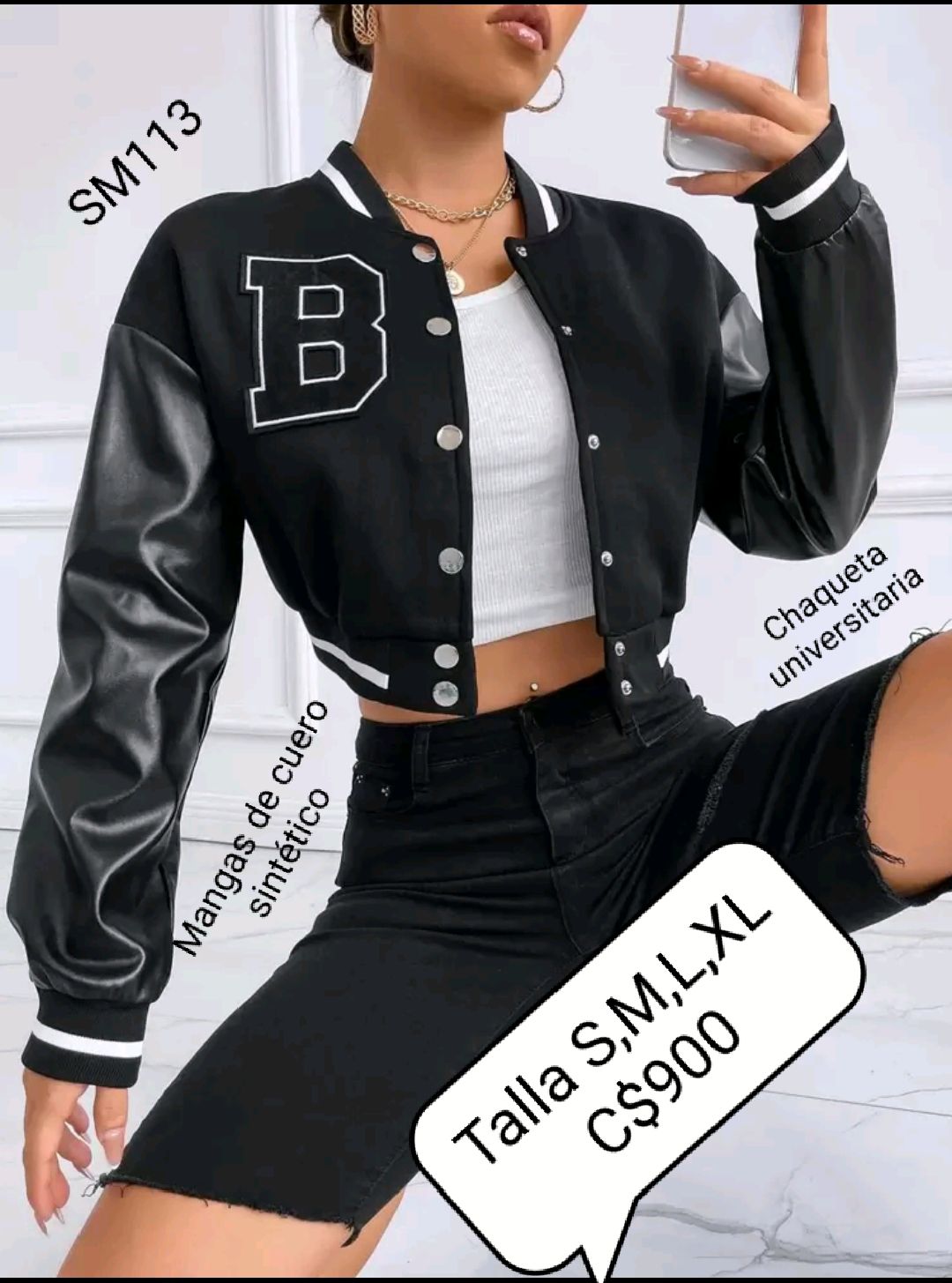 Sé el primero en valorar “Chaqueta universitaria negra con mangas de cuero sintético letra B” Cancelar la respuesta