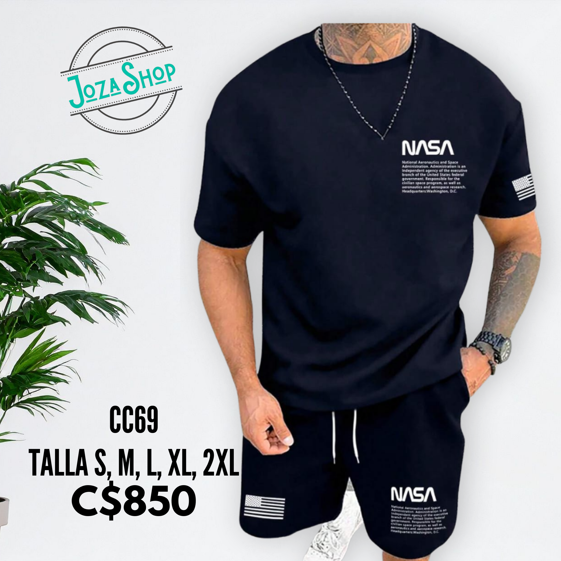 Seleccionar opciones Este producto tiene múltiples variantes. Las opciones se pueden elegir en la página de productoConjunto Short camiseta negra con estampado de NASA y Short color caqui – CC22